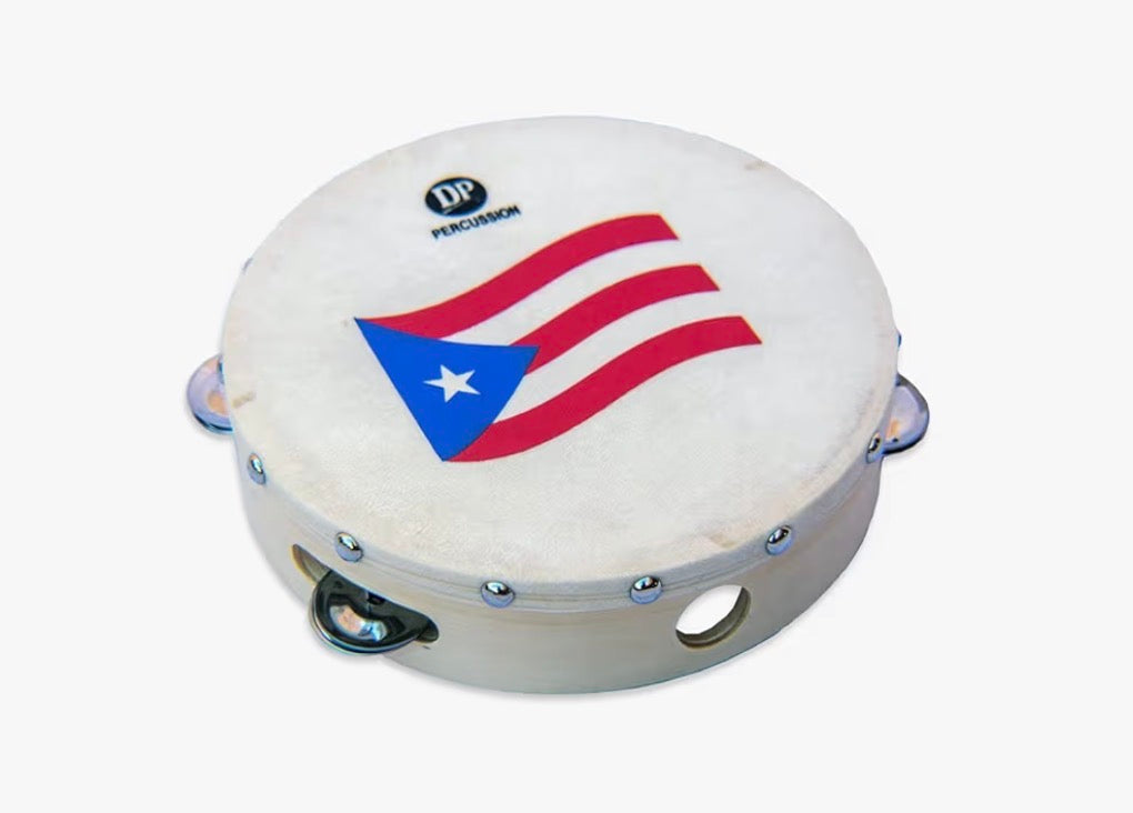 DP Music Percussion Kit with Carrying Bag contain Plastic guiro, tambourine with Puerto Rico Flag, maracas color red and claves. This percussion kit has everything you need for your party